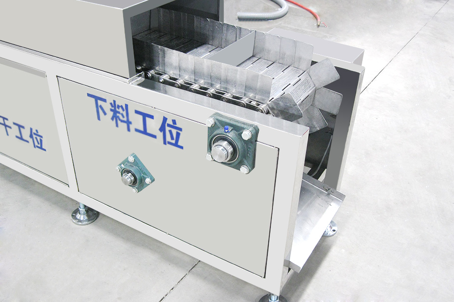 該設(shè)備有上下料網(wǎng)帶、超聲波清洗工位、噴淋漂洗工位、高壓風(fēng)切、熱風(fēng)烘干工位、溫控水加熱系統(tǒng)、風(fēng)機(jī)、溫控空氣加熱系統(tǒng)、移動(dòng)式風(fēng)刀、PLC+觸摸屏控制系統(tǒng)、管路系統(tǒng)及智能電器控制系統(tǒng)等組成。自動(dòng)進(jìn)排液和自動(dòng)加溫系統(tǒng)完全實(shí)現(xiàn)了無人干預(yù),自動(dòng)運(yùn)行,很大程度上降低了工人的勞動(dòng)強(qiáng)度。先進(jìn)的霧氣處理系統(tǒng)可以將清洗時(shí)產(chǎn)生的霧氣冷凝回流,空氣經(jīng)過濾和活性炭吸附后排出。