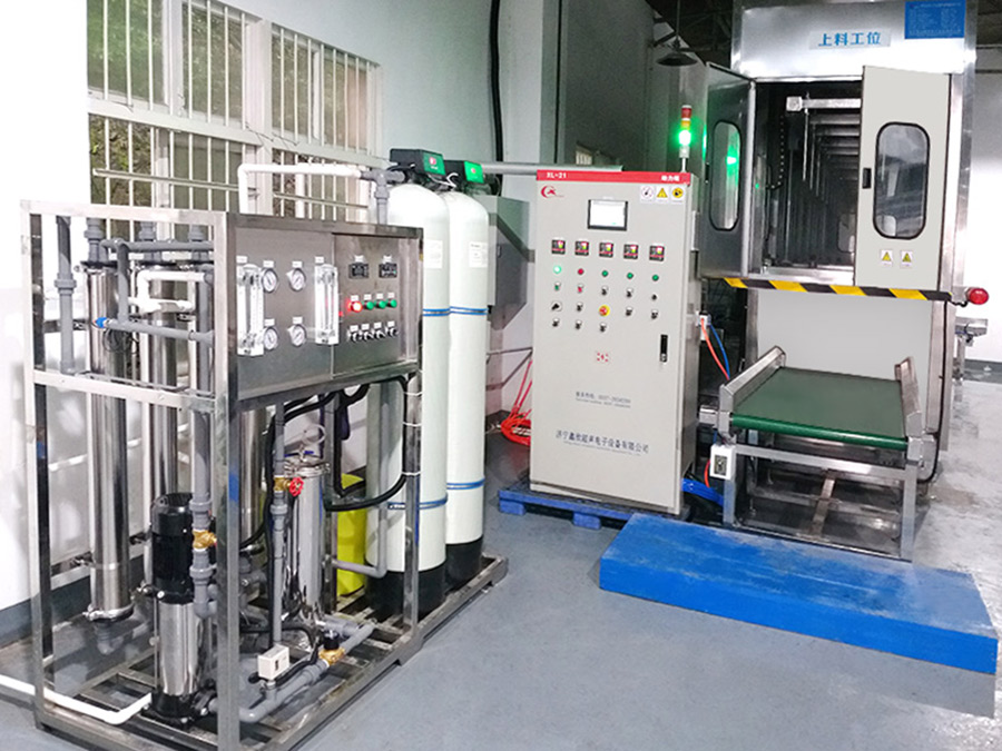 該設(shè)備有自動(dòng)上下料及轉(zhuǎn)角系統(tǒng)、超聲波清洗系統(tǒng),自動(dòng)拋動(dòng)、自動(dòng)溢流和油污分離裝置,噴淋系統(tǒng)、自動(dòng)高壓切水系統(tǒng)、自動(dòng)烘干系統(tǒng)。機(jī)械手自動(dòng)輸送系統(tǒng)采用高精度直線導(dǎo)軌配合高精度位置檢測(cè)傳感器,機(jī)械手可以準(zhǔn)確的實(shí)現(xiàn)工件的抓取和放置。自動(dòng)進(jìn)排液和自動(dòng)加溫系統(tǒng)完全實(shí)現(xiàn)了無(wú)人干預(yù),自動(dòng)運(yùn)行,很大程度上降低了工人的勞動(dòng)強(qiáng)度。先進(jìn)的霧氣處理系統(tǒng)可以將清洗時(shí)產(chǎn)生的霧氣冷凝回流,空氣經(jīng)過(guò)濾和活性炭吸附后排出。