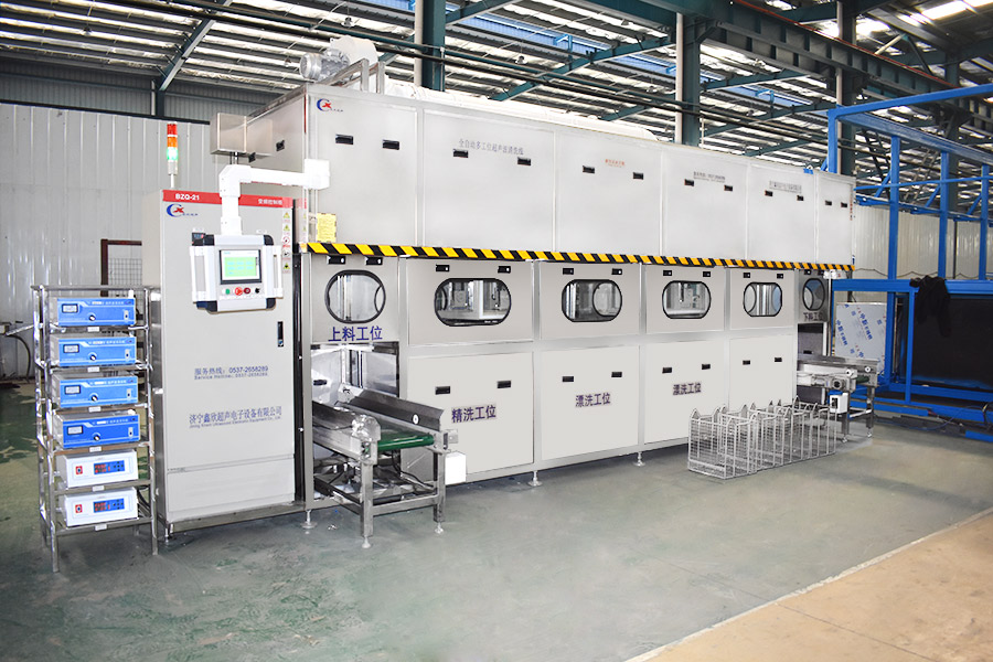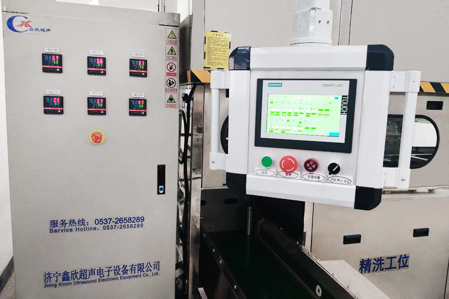 該設(shè)備有自動(dòng)上下料及轉(zhuǎn)角系統(tǒng)、超聲波清洗系統(tǒng),自動(dòng)拋動(dòng)、自動(dòng)溢流和油污分離裝置,噴淋系統(tǒng)、自動(dòng)高壓切水系統(tǒng)、自動(dòng)烘干系統(tǒng)。機(jī)械手自動(dòng)輸送系統(tǒng)采用高精度直線導(dǎo)軌配合高精度位置檢測傳感器,機(jī)械手可以準(zhǔn)確的實(shí)現(xiàn)工件的抓取和放置。自動(dòng)進(jìn)排液和自動(dòng)加溫系統(tǒng)完全實(shí)現(xiàn)了無人干預(yù),自動(dòng)運(yùn)行,很大程度上降低了工人的勞動(dòng)強(qiáng)度。先進(jìn)的霧氣處理系統(tǒng)可以將清洗時(shí)產(chǎn)生的霧氣冷凝回流,空氣經(jīng)過濾和活性炭吸附后排出。