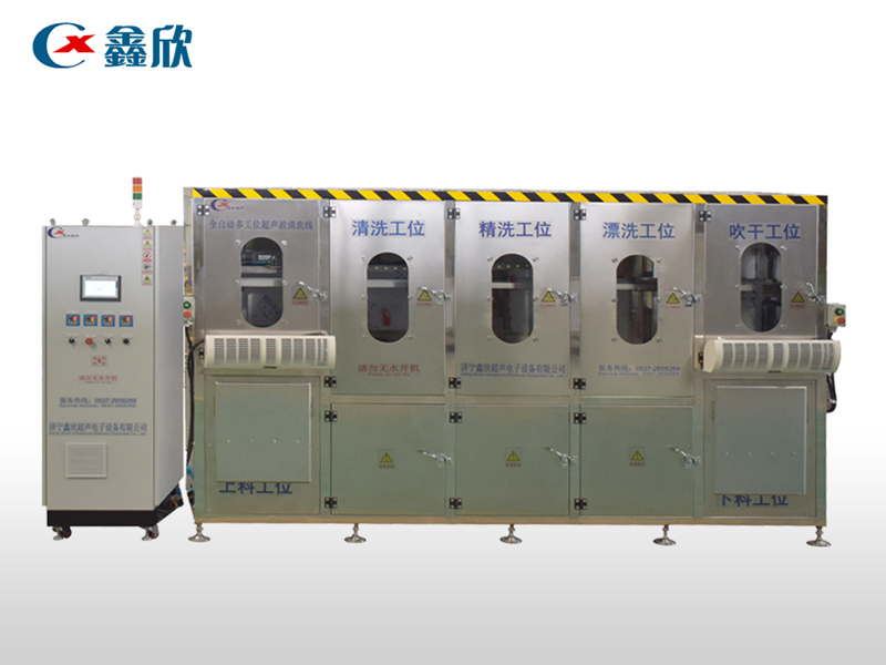 該設(shè)備有自動上下料及轉(zhuǎn)角系統(tǒng)、超聲波清洗系統(tǒng),自動拋動、自動溢流和油污分離裝置,浸泡系統(tǒng)、鼓泡系統(tǒng)、超聲波清洗系統(tǒng),下料風(fēng)切系統(tǒng)。機(jī)械手自動輸送系統(tǒng)采用高精度直線導(dǎo)軌配合高精度位置檢測傳感器,機(jī)械手可以準(zhǔn)確的實(shí)現(xiàn)工件的抓取和放置。自動進(jìn)排液和自動加溫系統(tǒng)完全實(shí)現(xiàn)了無人干預(yù),自動運(yùn)行,很大程度上降低了工人的勞動強(qiáng)度。先進(jìn)的霧氣處理系統(tǒng)可以將清洗時(shí)產(chǎn)生的霧氣冷凝回流,空氣經(jīng)過濾和活性炭吸附后排出。